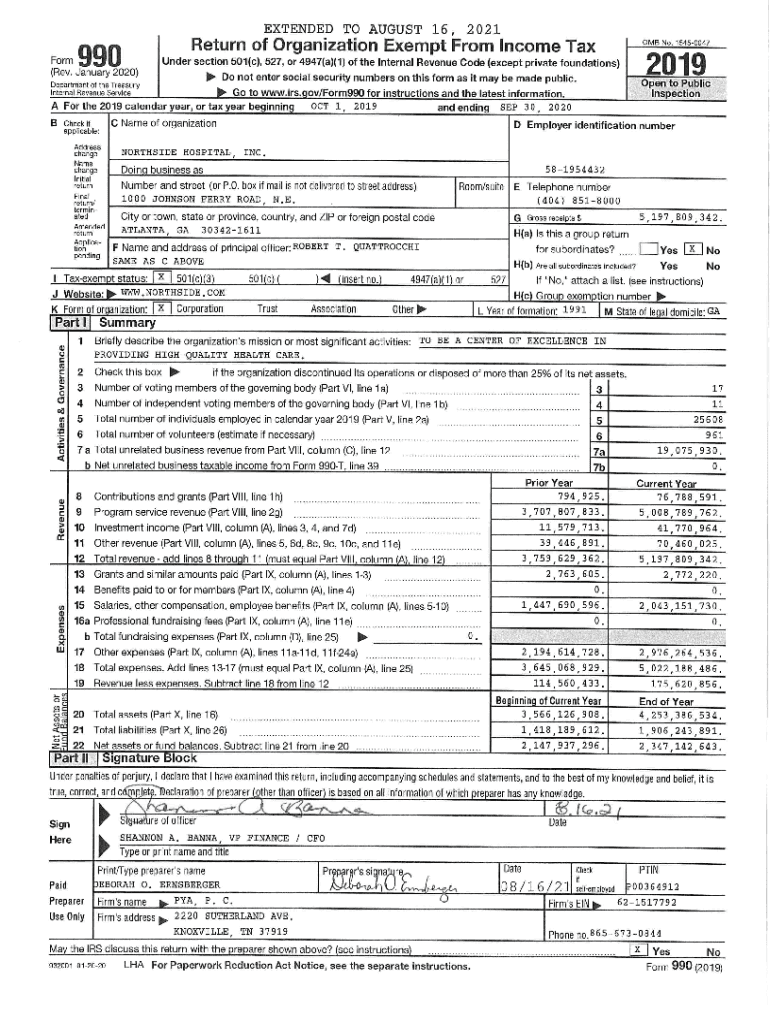 NORTHSIDE HOSPITAL, INC. Part III Statement of Program Service Accomplishments581954432Form 990 (2019)Page 2Check if Schedule O contains a response or note to any line in this Part III 12Briefly describe