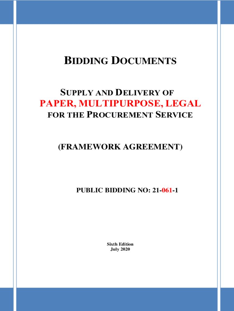BIDDING DOCUMENTS SUPPLY AND DELIVERY OF PAPER, MULTIPURPOSE, LEGAL FOR THE PROCUREMENT SERVICE(FRAMEWORK AGREEMENT)PUBLIC BIDDING NO: 210611Sixth Edition July 20201Table of Contents Glossary of Acronyms,