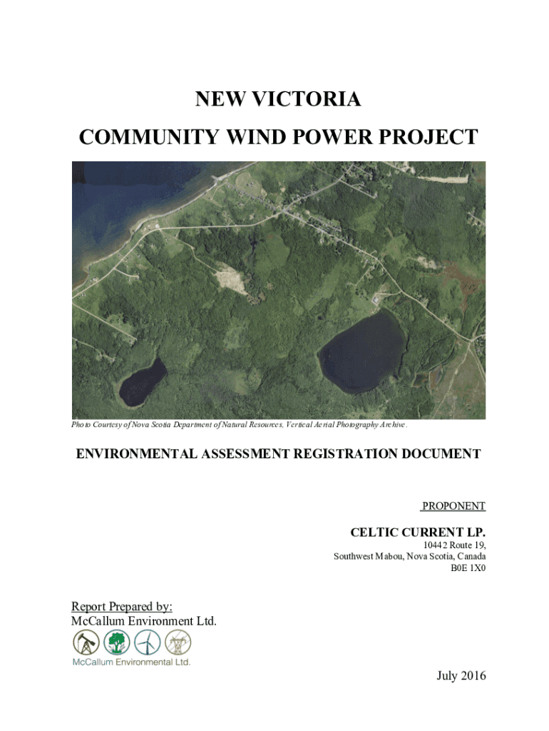 NEW VICTORIA COMMUNITY WIND POWER PROJECTPhoto Courtesy of Nova Scotia Department of Natural Resources, Vertical Aerial Photography Archive. ENVIRONMENTAL ASSESSMENT REGISTRATION DOCUMENTPROPONENTCELTIC