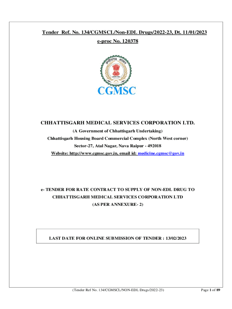Tender Ref. No. 134/COMIC/None DL Drugs/202223, DT. 11/01/2023