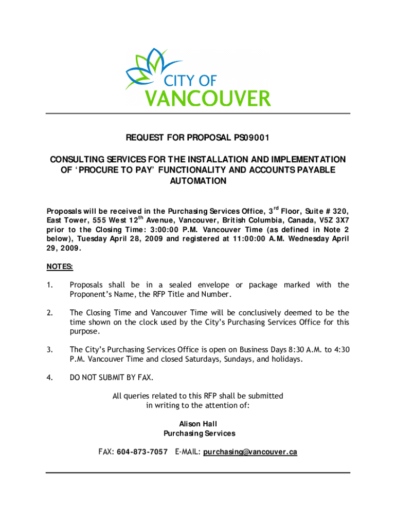 REQUEST FOR PROPOSAL PS09001 CONSULTING SERVICES FOR THE INSTALLATION AND IMPLEMENTATION OF PROCURE TO PAY FUNCTIONALITY AND ACCOUNTS PAYABLE AUTOMATION Proposals will be received in the Purchasing