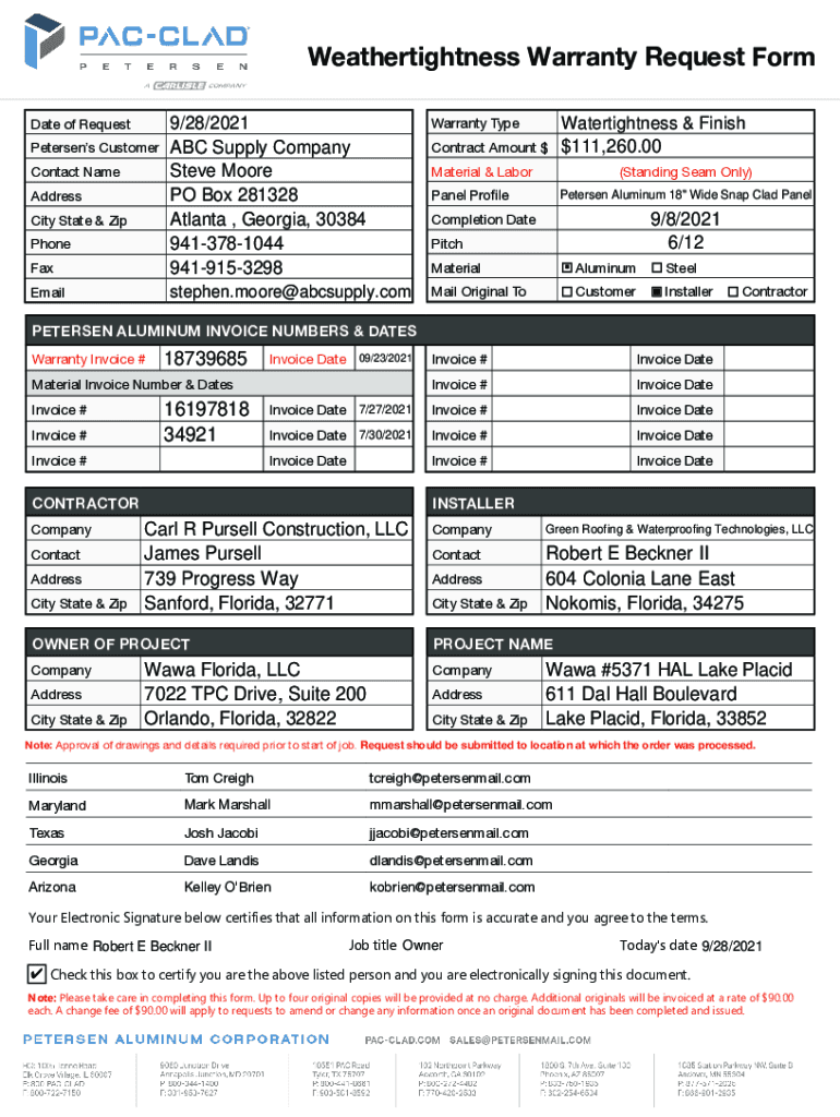 Weather tightness Warranty Request Form