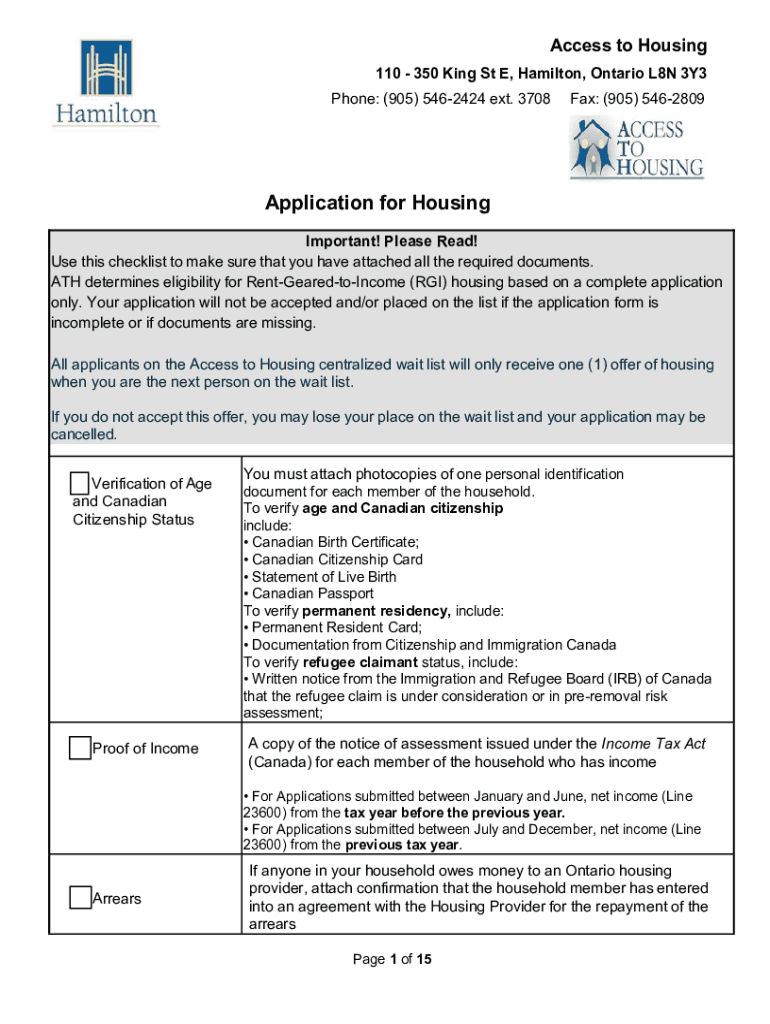 Access to Housing 110 350 King Street E, Hamilton, Ontario L8N 3Y3 Phone: (905) 5462424 ext.3708 Fax: (905) 5462809 Email: ath@hamilton.caApplications for Subsidized Housing in Hamilton Information