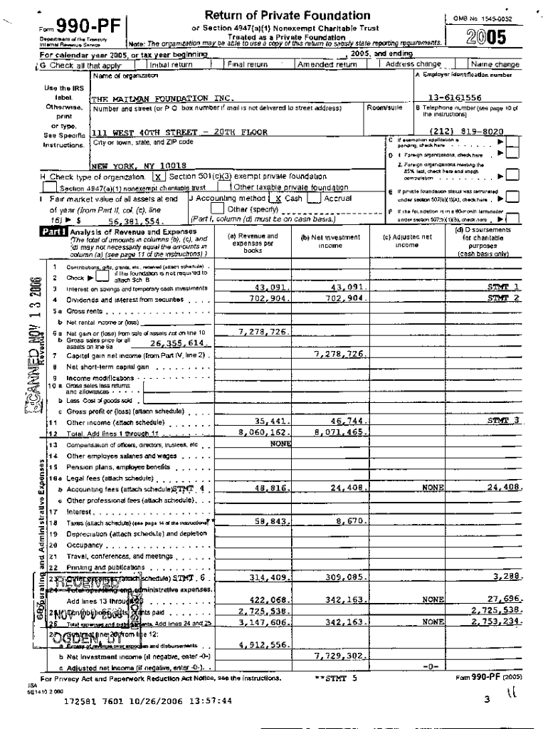 Return of Private Foundation990PFFormDepartment of the Treasury OMB No 15450052or Section 4947(a)(1) Nonexempt Charitable Trust