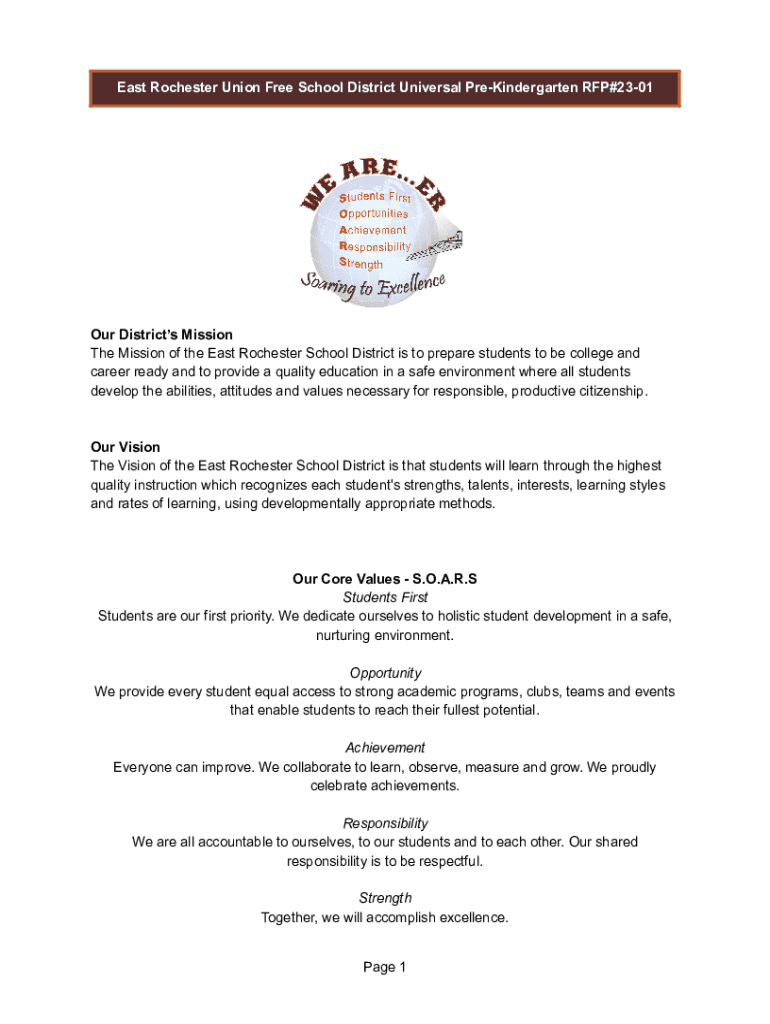 East Rochester Union Free School District Universal PreKindergarten RFP#2301Our Districts Mission The Mission of the East Rochester School District is to prepare students to be college and career