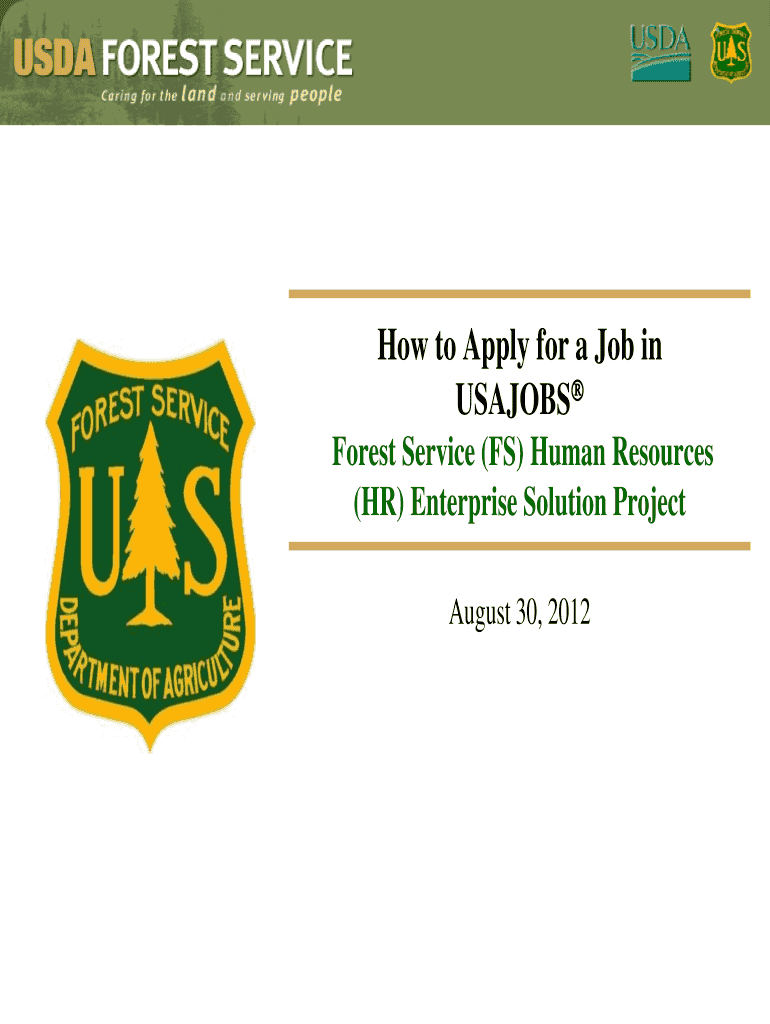 How to Apply for a Job in JOBS Forest Service (FS) Human Resources (HR) Enterprise Solution Project August 30, 2012Overview This presentation explains how to : Log in to JOBS Search for a job vacancy