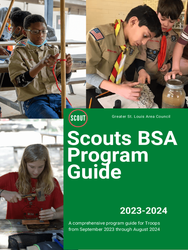 SCOUTGreater St. Louis Area CouncilScouts BSA Program Guide 20232024 A comprehensive program guide for Troops from September 2023 through August 2024SCOUTWhat You\'ll Learn Get firsthand information