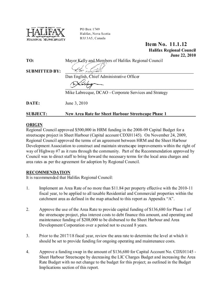Get the free New Area Rate for Sheet Harbour Streetscape Phase 1 - June 22/10 Regional Council - HRM