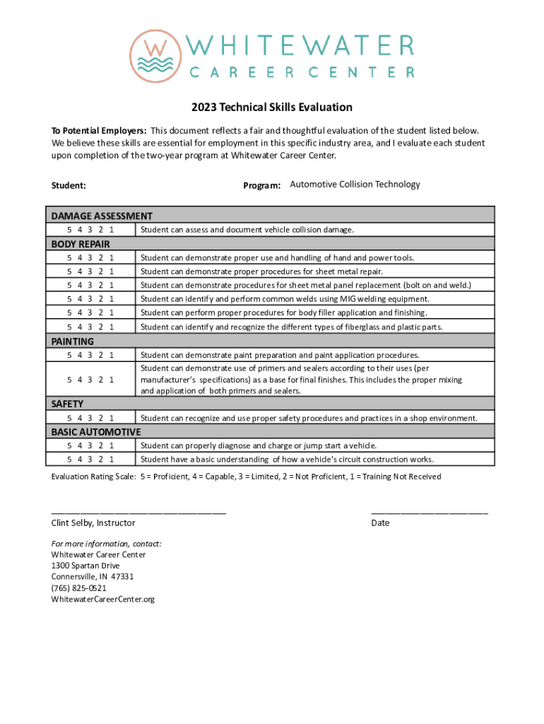 Get the free FINAL Technical Skills Evaluation Form - Automotive Collision Technology.docx