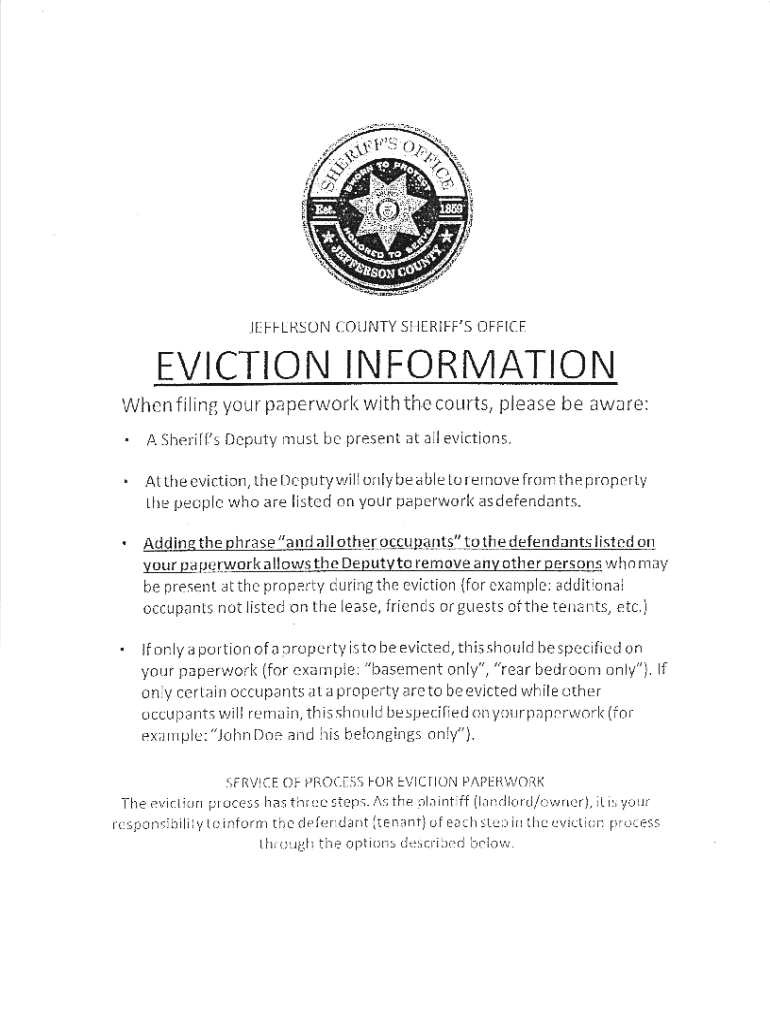 IDF 100Guide conviction Cases 1. Basic Information This process asks the court to evict a tenant from a residential property. The Court can also award money for property damage or for back due rent.