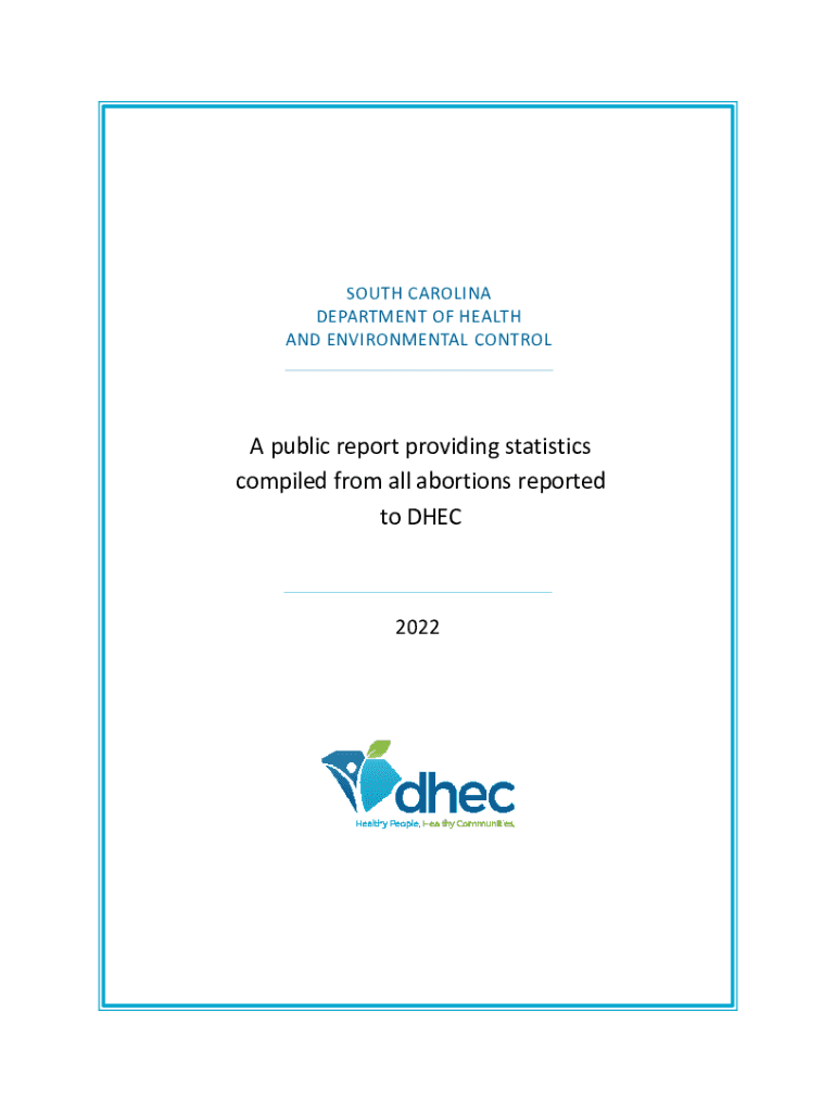 SOUTH CAROLINA DEPARTMENT OF HEALTH AND ENVIRONMENTAL CONTROL public report providing statistics compiled from all abortions reported to DHEC2022INTRODUCTION SC Code of Law 444160 requires that all