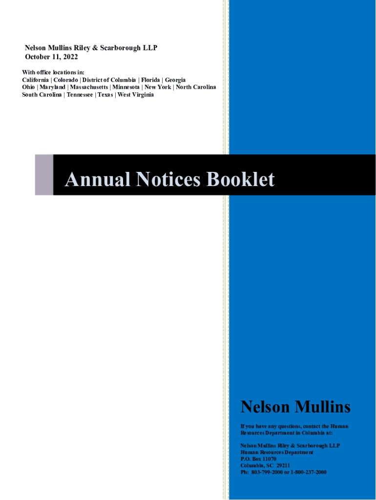 Nelson Mullins Riley & Scarborough LLP October 2 11, 2022 With office locations in: California | Colorado | District of Columbia | Florida | Georgia Ohio | Maryland | Massachusetts | Minnesota | New