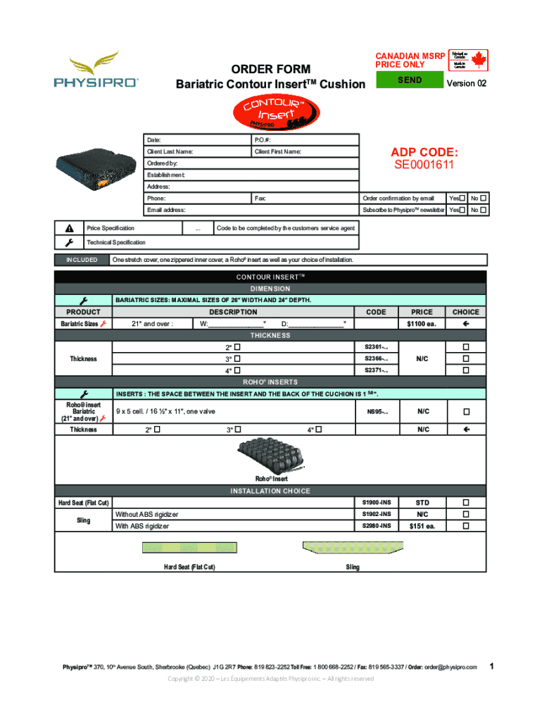Get the free ORDER FORM Bariatric Contour InsertTM Cushion