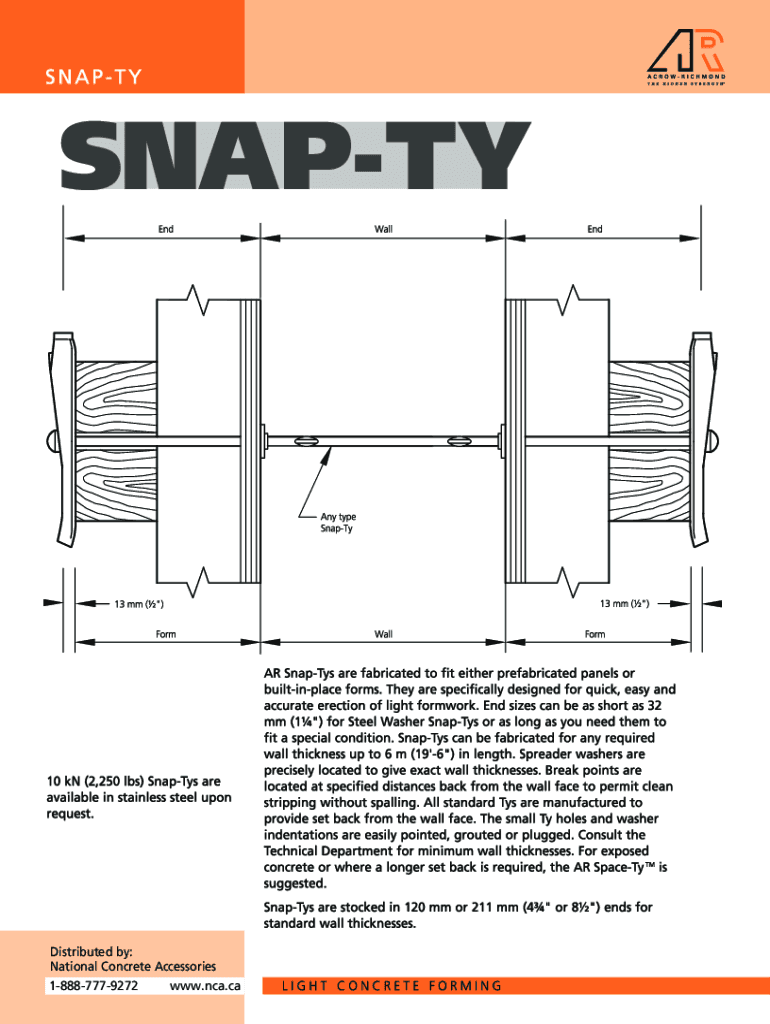 Distributed by: National Concrete Accessories 18887779272 www.nca.caSNAPTYPlastic Cone Snappy (PC)The AR Plastic Cone Snappy and the AR Heavy Duty Plastic Cone Snappy are equipped with a Plastic Cone