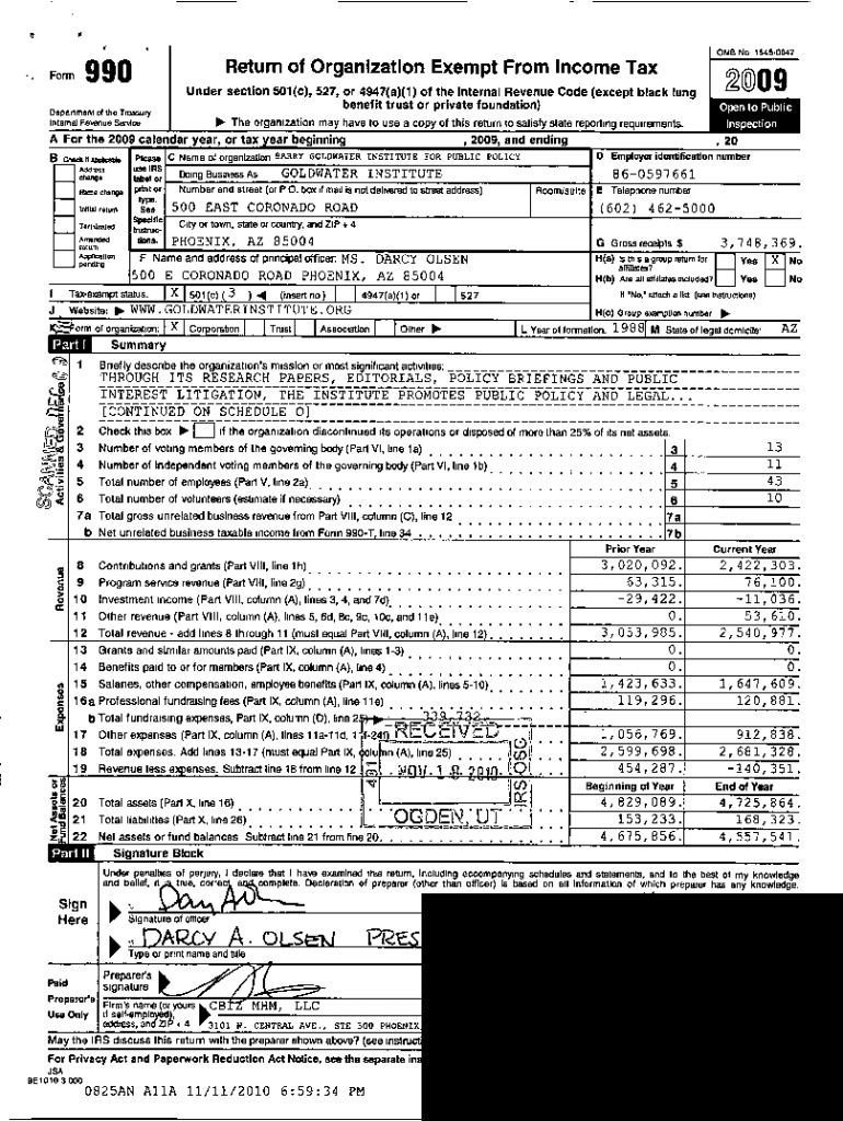 A0OMB No 15450047Return of Organization Exempt From Income Tax990Form2009Under section 501(c), 527, or 4947(a)(1) of the Internal Revenue Code (except black lung benefit trust or private foundation)Department