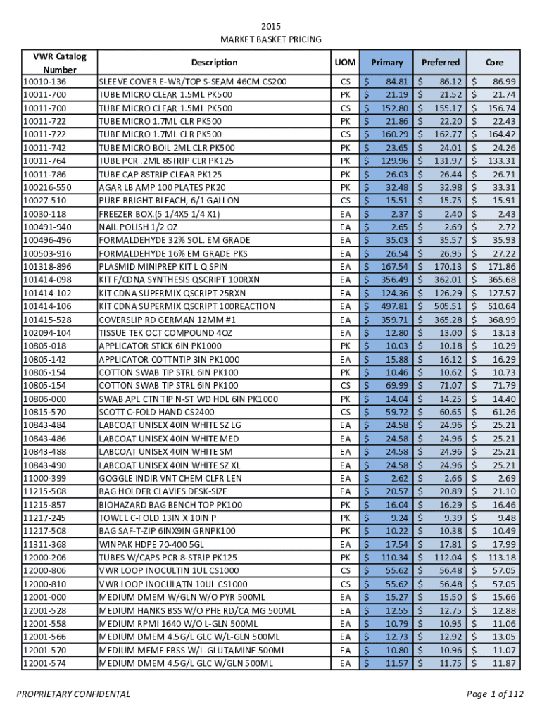 2015 MARKET BASKET PRICING VAR Catalog Number 10010136 10011700 10011700 10011722 10011722 10011742 10011764 10011786 100216550 10027510 10030118 100491940 100496496 100503916 101318896 101414098