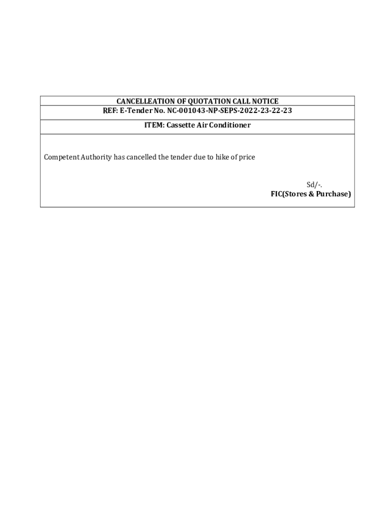 CANCELLATION OF QUOTATION CALL NOTICE