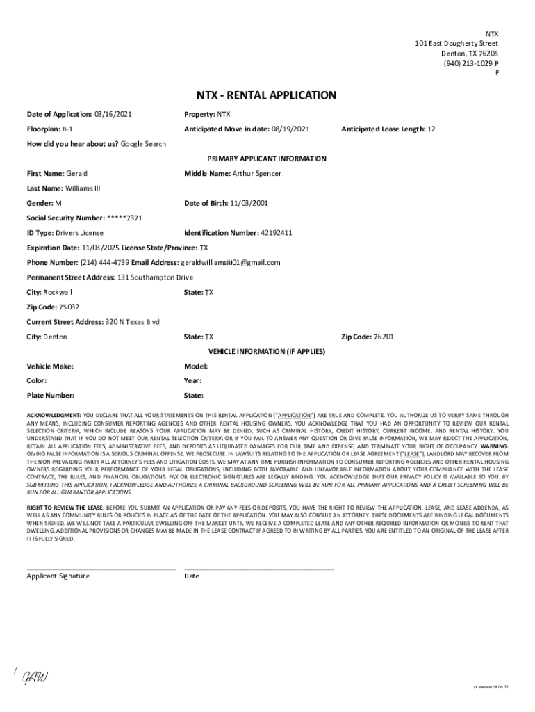 Date of Application: 03/16/2021Property: NTXFloorplan: B1Anticipated Move in date: 08/19/2021Anticipated Lease