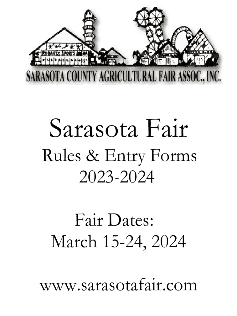 Sarasota Fair Rules & Entry Forms 20232024 Fair Dates: March 1524, 2024 www.sarasotafair.comFair President / CEO Rory S. Martin Fair Board Chairman Dale Oswald Livestock Committee Chairman Bill McClain