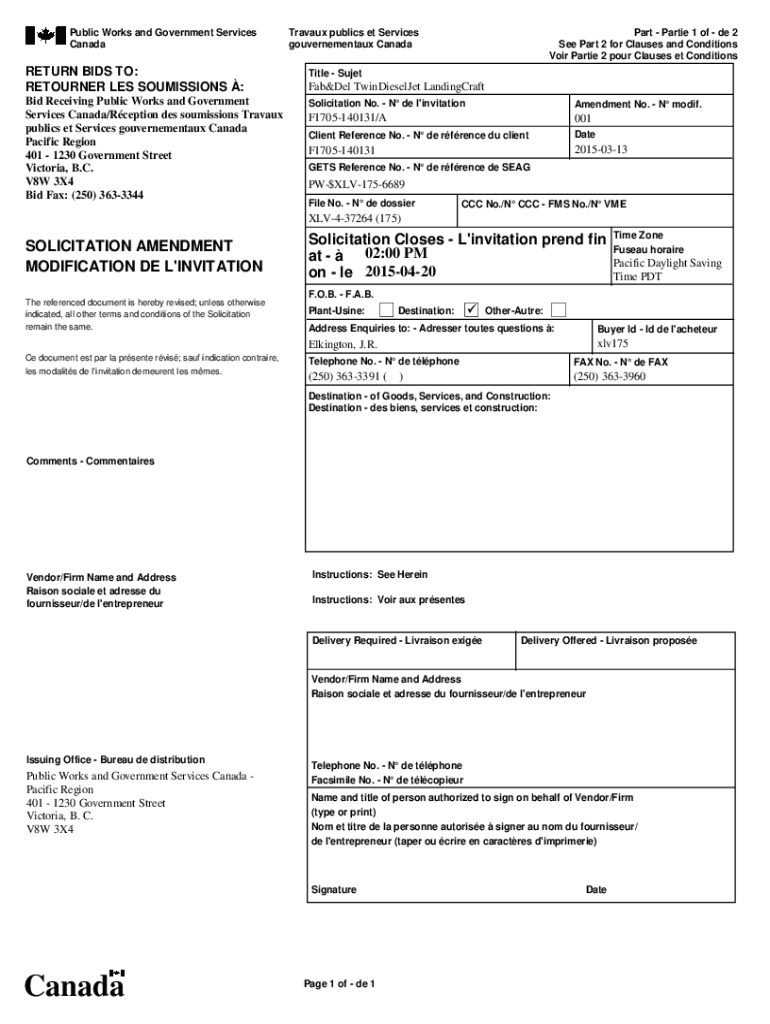 gouvernementaux CanadaPart Parties 1 of DE 2