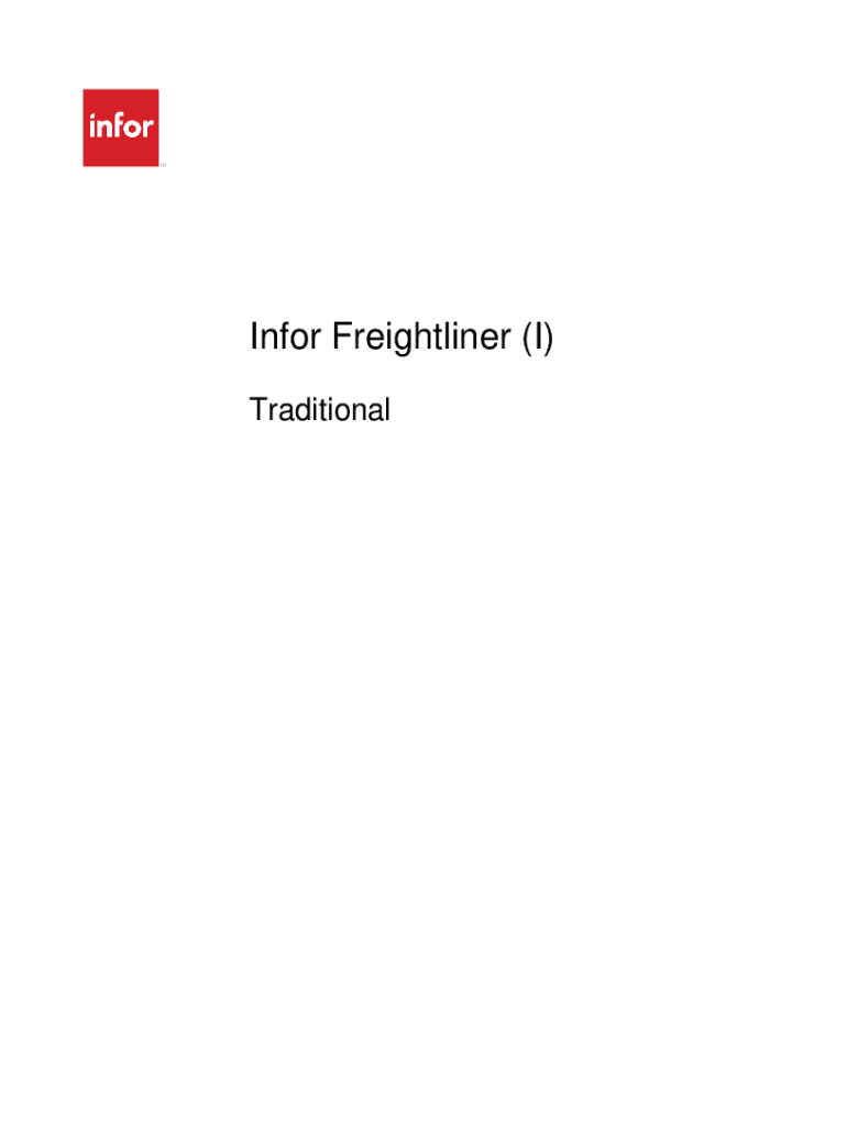 Inform Freightliner (I) TraditionalCopyright 2018 InforImportant Notices The material contained in this publication (including any supplementary information) constitutes and contains confidential