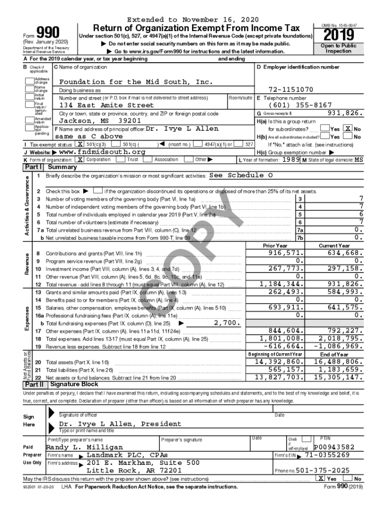Extended to November 16, 2020990OMB No. 15450047Return of Organization Exempt From Income Reinform (Rev. January 2020)2019Under section 501(c), 527, or 4947(a)(1) of the Internal Revenue Code (except
