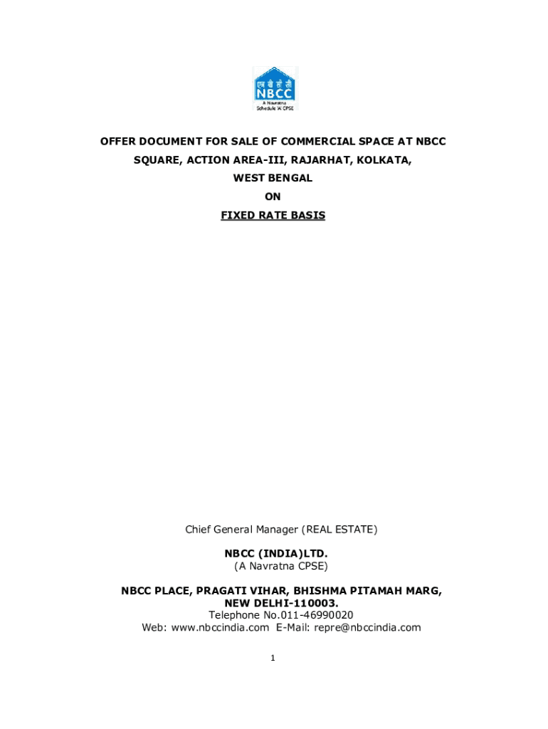 OFFER DOCUMENT FOR SALE OF COMMERCIAL SPACE AT NBC