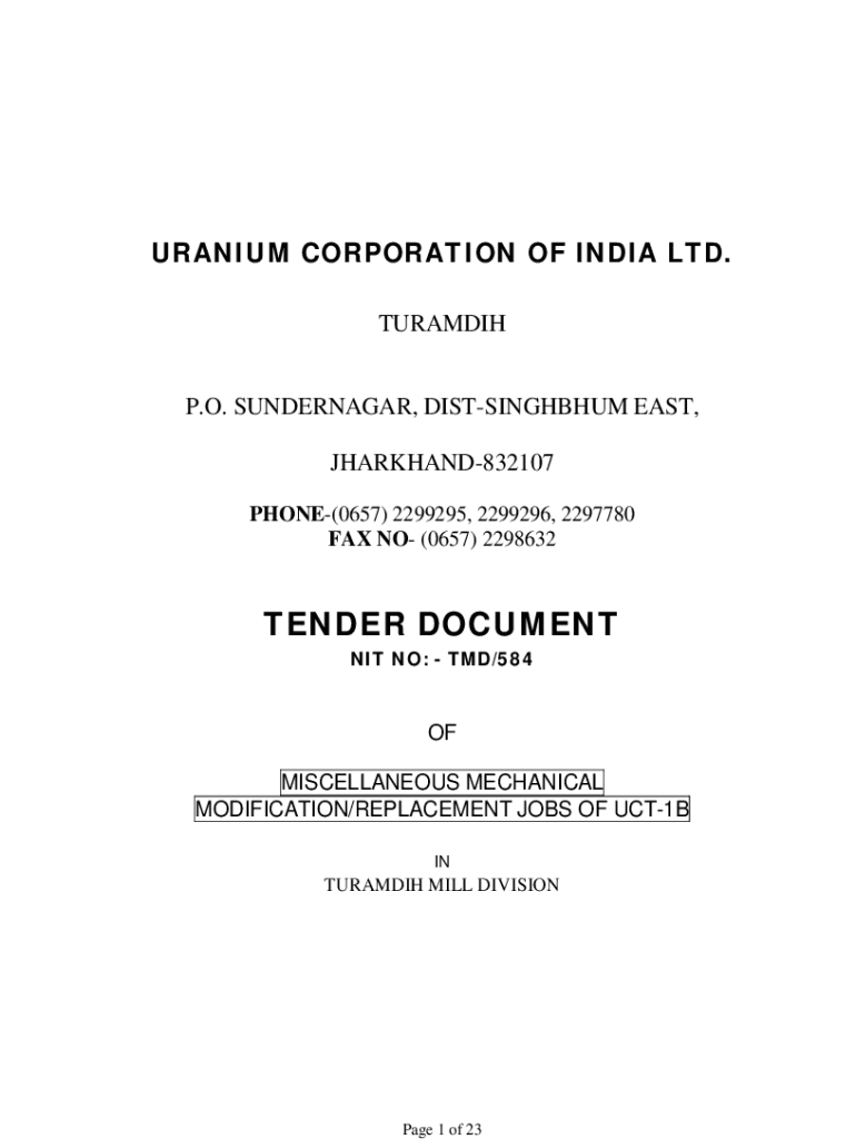 Get the free N.I.T. No.: TMD/MIN-678 Sealed offers are invited from the ... - ucil gov