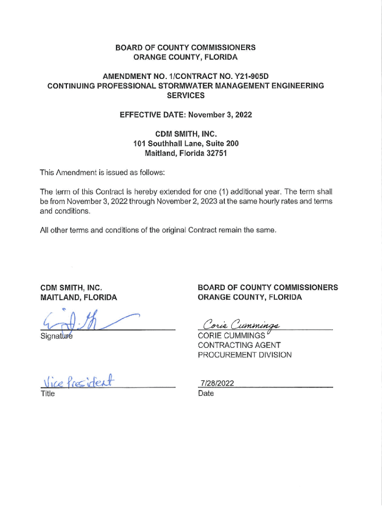 7/28/2022CONTRACT #Y21905D 3rd November, 20___, 21 by THIS CONTRACT made and entered into this ___ day of ___ and between the: ORANGE COUNTY, FLORIDA 201 S. ROSALIND AVENUE ORLANDO, ORANGE COUNTY,