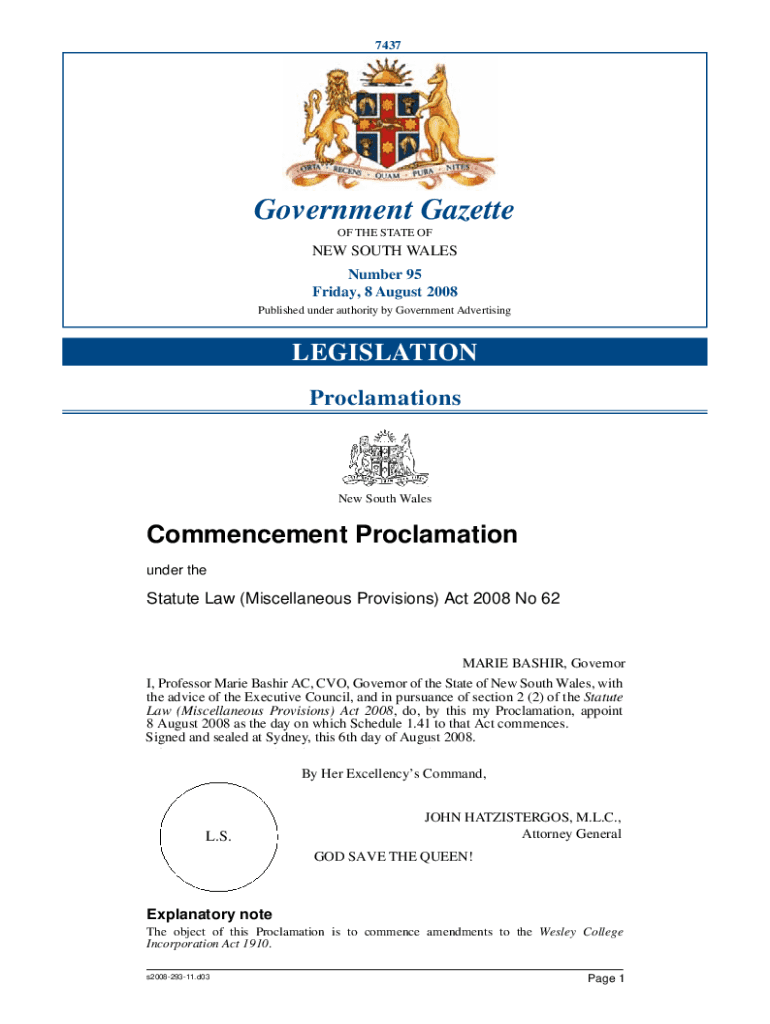 7437Government Gazette OF THE STATE ONE SOUTH WALES Number 95 Friday, 8 August 2008 Published under authority by Government AdvertisingLEGISLATION Proclamations South WalesCommencement Proclamation