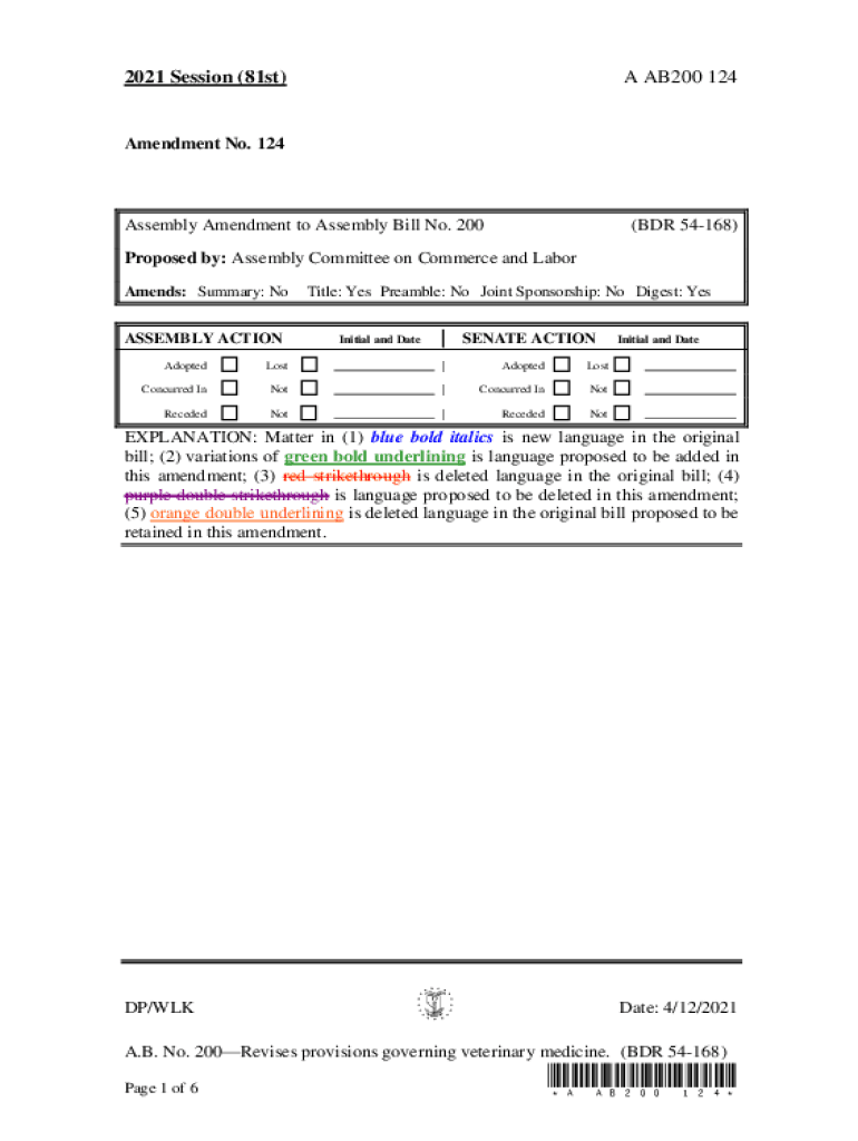 2021 Session (81st)A AB200 124Amendment No. 124Assembly Amendment to Assembly Bill No. 200(BDR 54168)Proposed by: Assembly Committee on Commerce and Labor