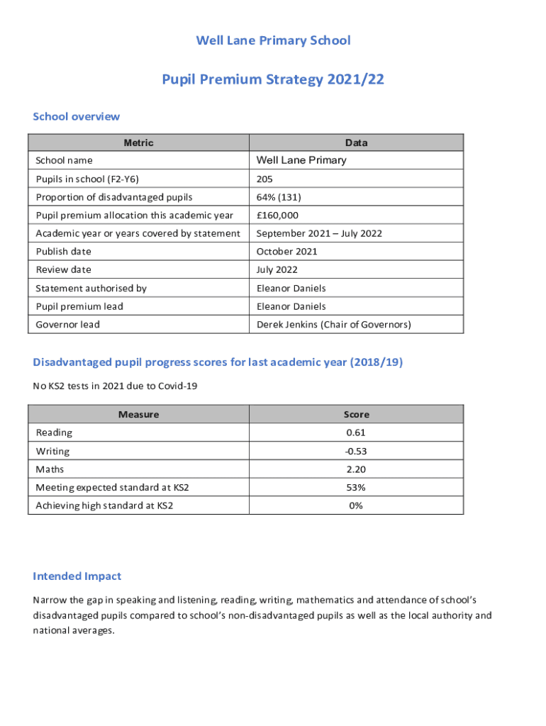 Well Lane Primary SchoolPupil Premium Strategy 2021/22