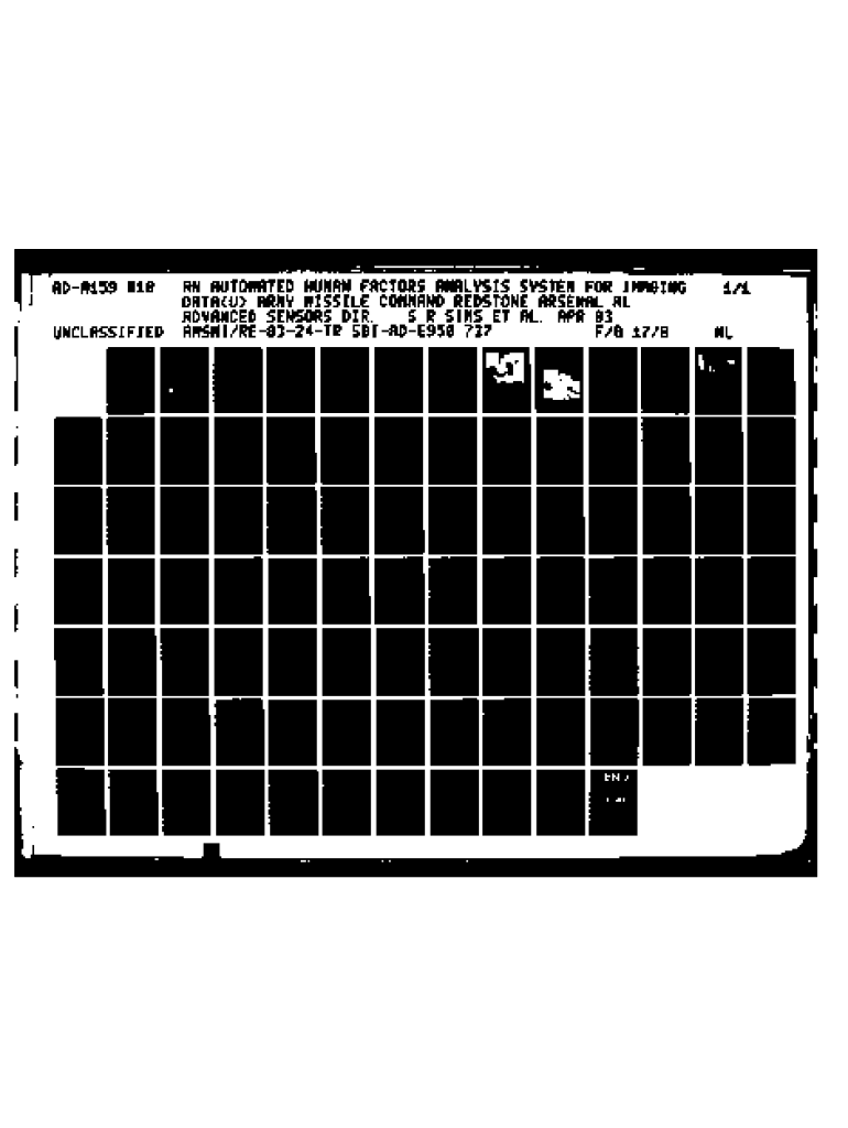 RDA159 l19 UCASIFIEDIRN AUTOMATED HUMAN FACTORS ANALYSIS SYSTEM FOR IMAGING DATA(U) ARMY MISSILE COMMAND REDSTONE ARSENAL AL S R SIMS ET AL. APR 83 ADVANCED SENSORS DIR. F/G 17/9 RM SNI/RE8324TR SBIADE950