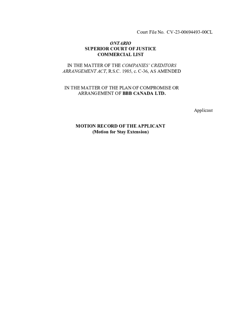 Court File No. CV230069449300CL ONTARIO SUPERIOR COURT OF JUSTICE COMMERCIAL LIST IN THE MATTER OF THE COMPANIES CREDITORS ARRANGEMENT ACT, R.S.C. 1985, c. C36, AS AMENDED IN THE MATTER OF THE PLAN