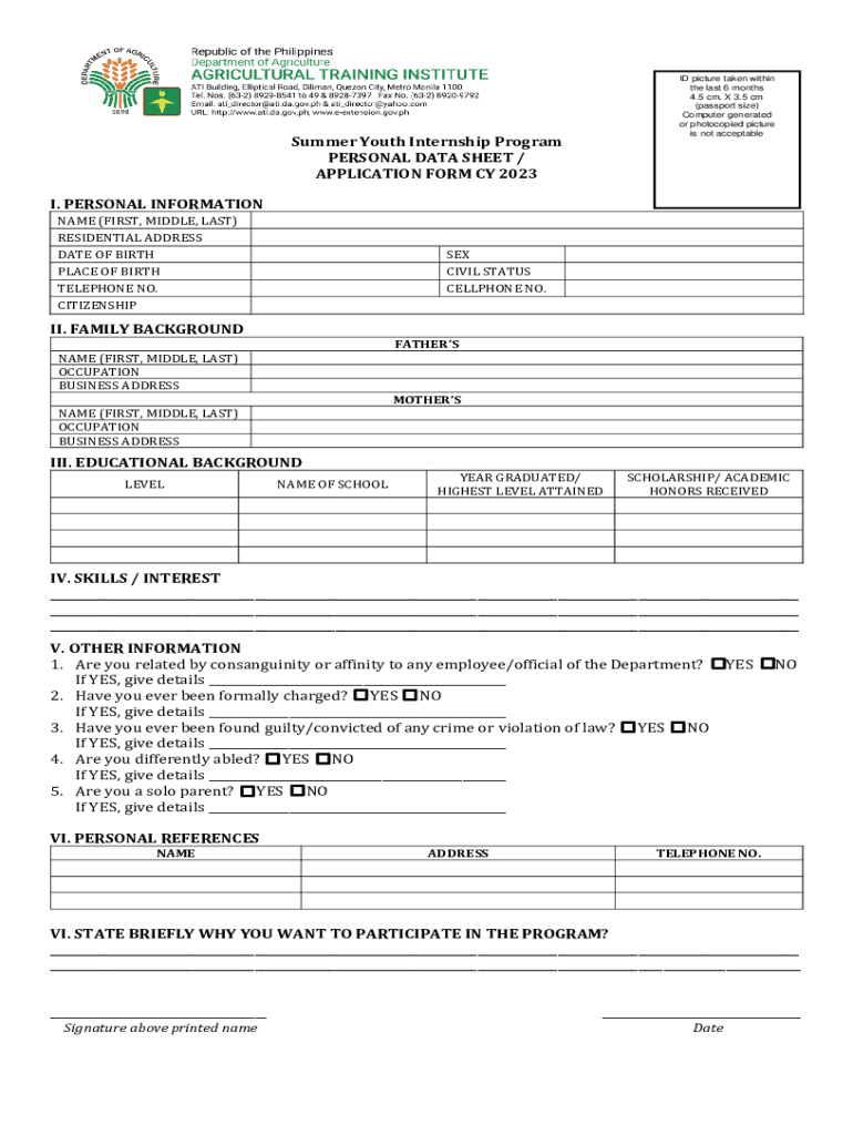 The syip application formpdf can be filled out electronically or manually by providing all requested information accurately.