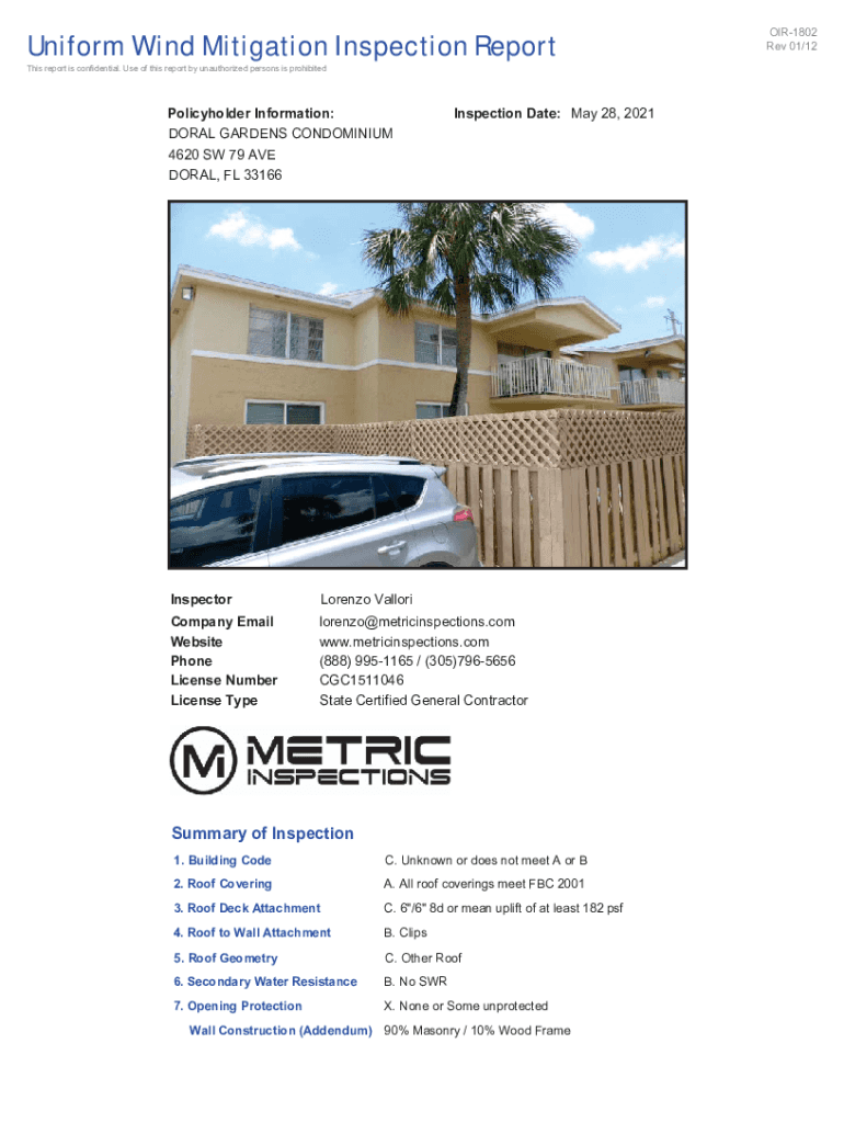 Uniform Wind Mitigation Inspection Report