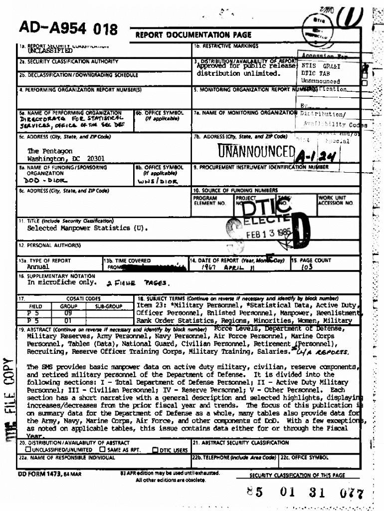 ADA954 018REPORT DOCUMENTATION PAGE1. REPORT BT.UK t ILMajiriwuw.lb. Restrictive MARKINGS2a. SECURITY CLASSIFICATION AUTHORITY3 \” DISTRIBUTION/ AVAILAftJUTY OF REPOR1,approved for public release