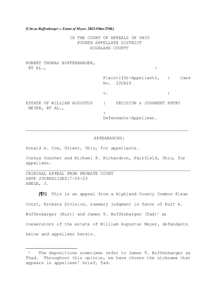[Cite as Buffenbarger v. Estate of Meyer, 2023Ohio2760.]IN THE COURT OF APPEALS OF OHIO