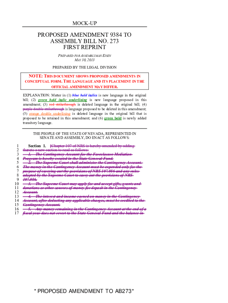 MOCKUPPROPOSED AMENDMENT 9384 TO ASSEMBLY BILL NO. 273 FIRST REPRINT PREPARED FOR ASSEMBLYMAN RISEN MAY 30, 2013, PREPARED BY THE LEGAL DIVISIONNOTE: THIS DOCUMENT SHOWS PROPOSED AMENDMENTS IN CONCEPTUAL