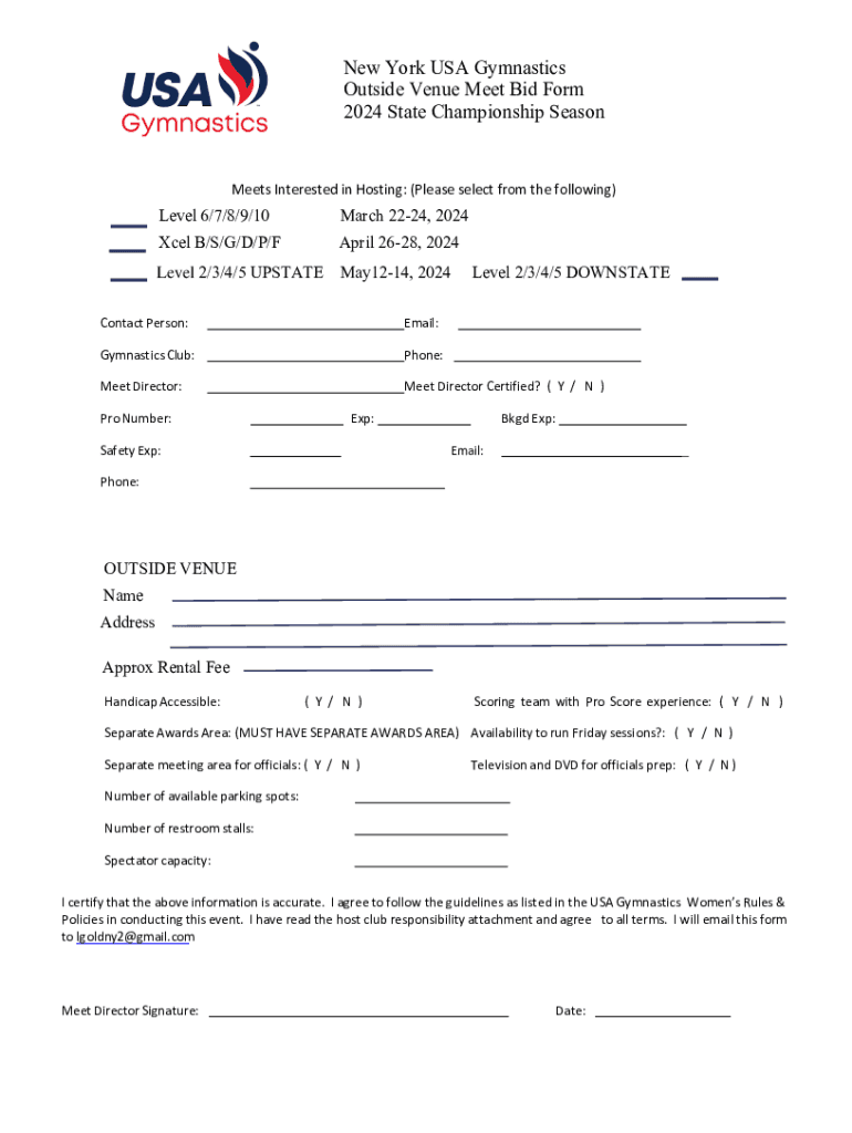 Get the free New York USA Gymnastics Outside Venue Meet Bid Form ...