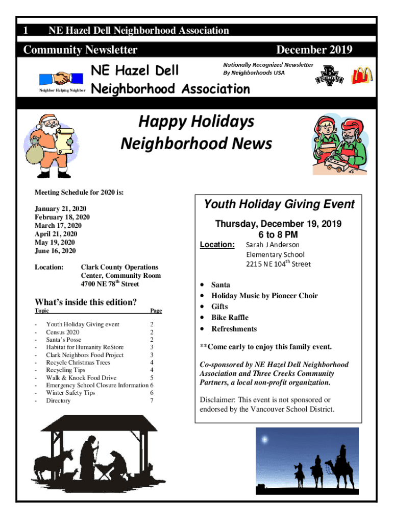1NE Hazel Dell Neighborhood AssociationCommunity NewsletterNeighbor Helping Neighbor December 2019NE Hazel Dell