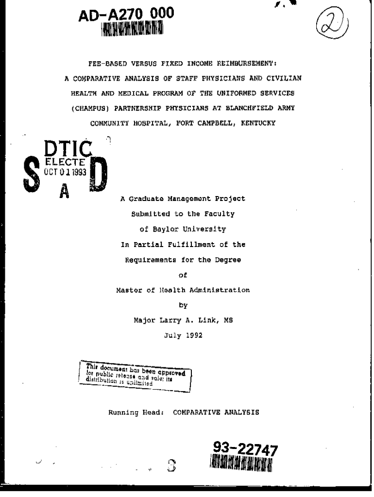 ADA270 000 FREEBASED VERSUS FIXED INCOME REIMBURSEMENT: A COMPARATIVE ANALYSIS OF STAFF PHYSICIANS AND CIVILIAN HEALTH AND MEDICAL PROGRAM OF THE UNIFORMED SERVICES (CAMPUS)PARTNERSHIP PHYSICIANS