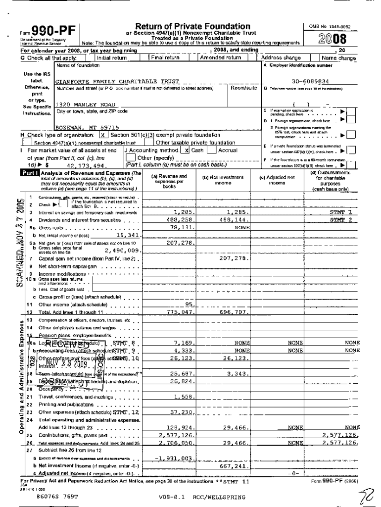 Form 9 9 0Return of Private FoundationPFDepartment of the Treasury OMB No 15450052or Section 4947(a)(1) Nonexempt Charitable Trust