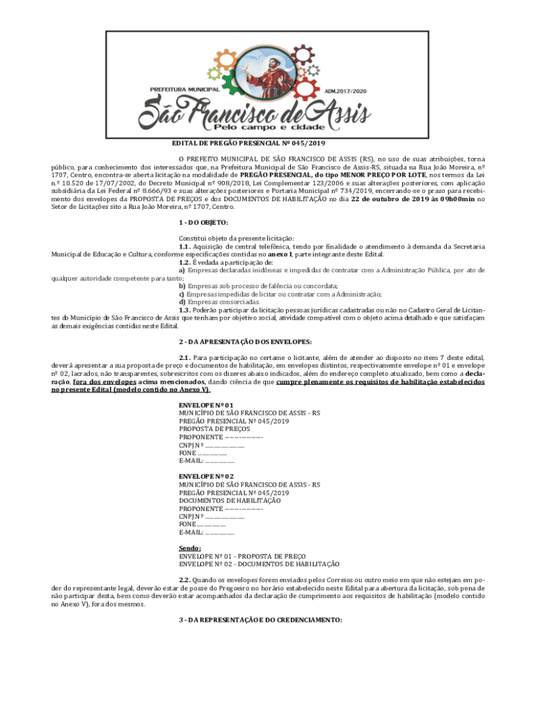 Obtenha o gratuito O PREFEITO MUNICIPAL DE SO FRANCISCO DE ASSIS (RS), no uso de suas atribuies, ...