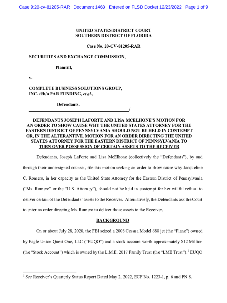 Case 9:20cv81205RAR Document 1468 Entered on FLED Docket 12/23/2022-Page 1 of 9UNITED STATES DISTRICT COURT