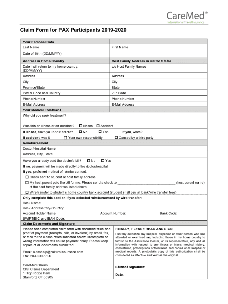 Get the free Claim Form for PAX Participants 2019-2020