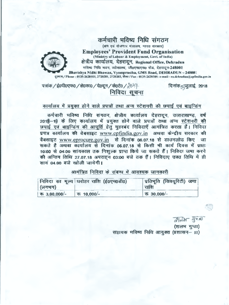 (Ministry of Labor & Employment, Govt. of India) qjlllfotll, 5\'1ctrl,Regional Office, Dehradun. . \'7ftooo