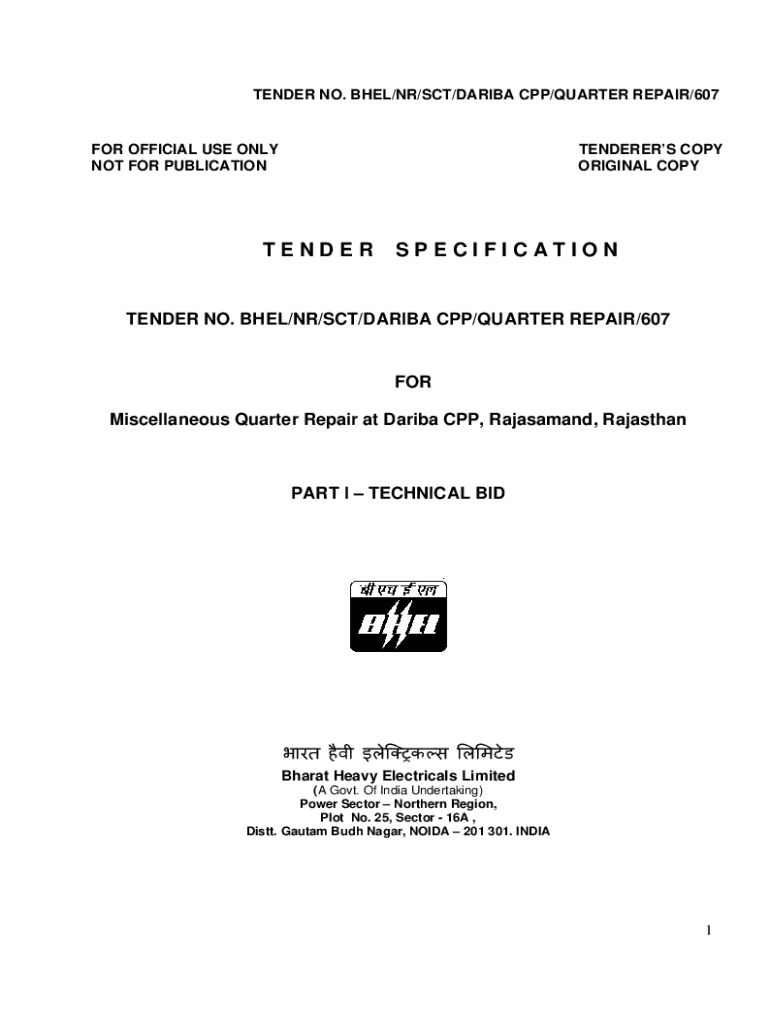 ORIGINAL COPYTENDERSPECIFICATIONTENDER NO. BAEL/NR/SET/DAR IBA CPP/QUARTER REPAIR/607FOR