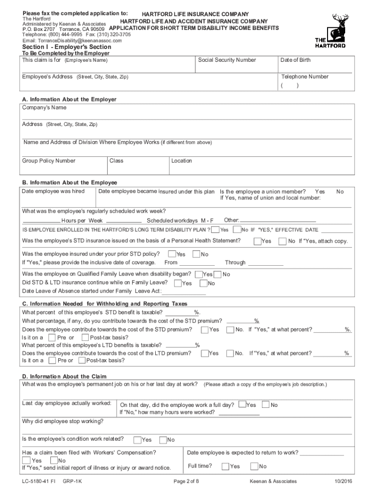 HARTFORD LIFE INSURANCE COMPANY HARTFORD LIFE AND ACCIDENT INSURANCE COMPANYAPPLICATION FOR SHORT TERM DISABILITY INCOME BENEFITS This application package is divided into four sections, as follows:
