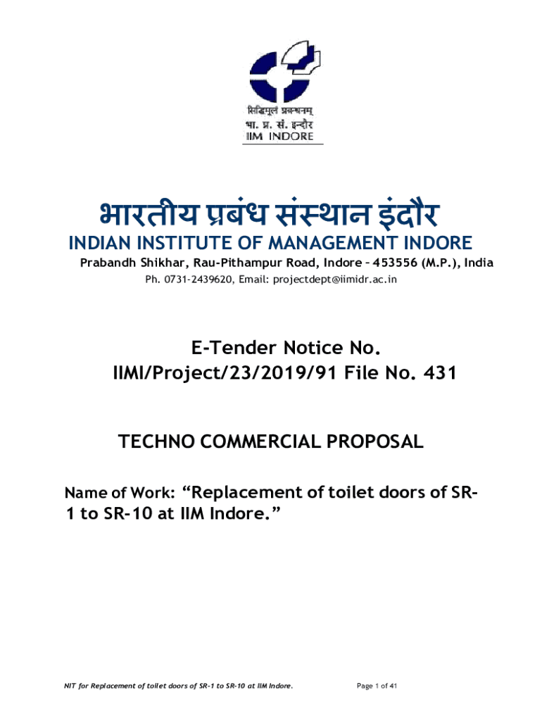 INDIAN INSTITUTE OF MANAGEMENT INDORE Armband Shikhar, RauPithampur Road, Indore 453556 (M.P.), India pH. 07312439620, Email: projectdept@iimidr.ac.inETender Notice No. MIMI/Project/23/2019/91 File